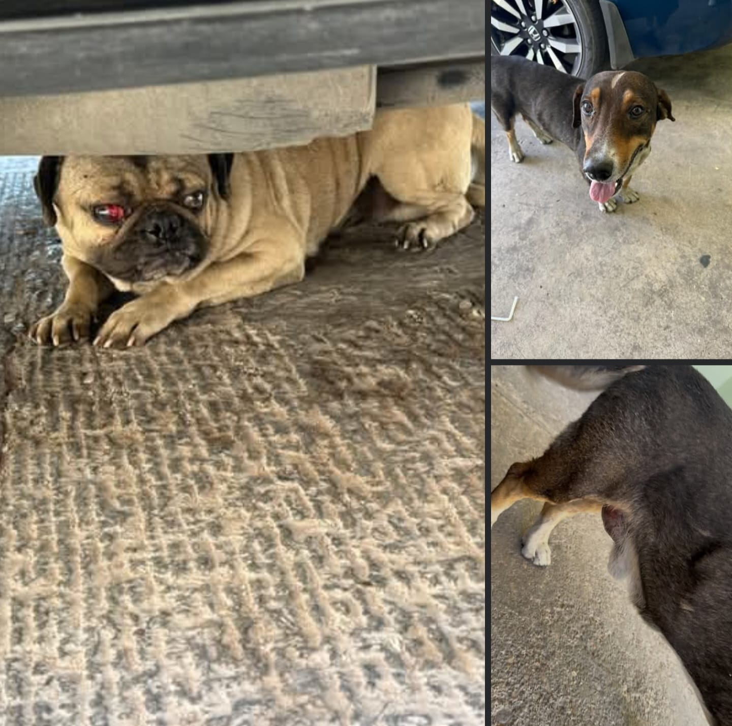 Dos perros en situación de calle que deambulan diariamente en las inmediaciones de una oficina ubicada en calles de la colonia Campesina, principalmente entre la calle Nomeolvides y