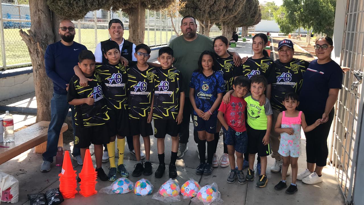 H. Cd de Chihuahua.– El regidor del PAN, Adán Galicia, entregó uniformes y equipamiento deportivo al equipo de fútbol que entrena en el Parque “Tuto Olmos”, como parte