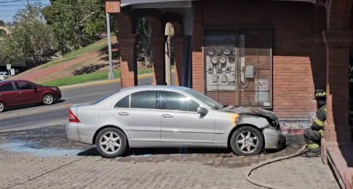 H. Cd de Chihuahua.- Un fuerte incendio en un vehículo de lujo desató la movilización de cuerpos de emergencia este lunes por la mañana, justo en el cruce
