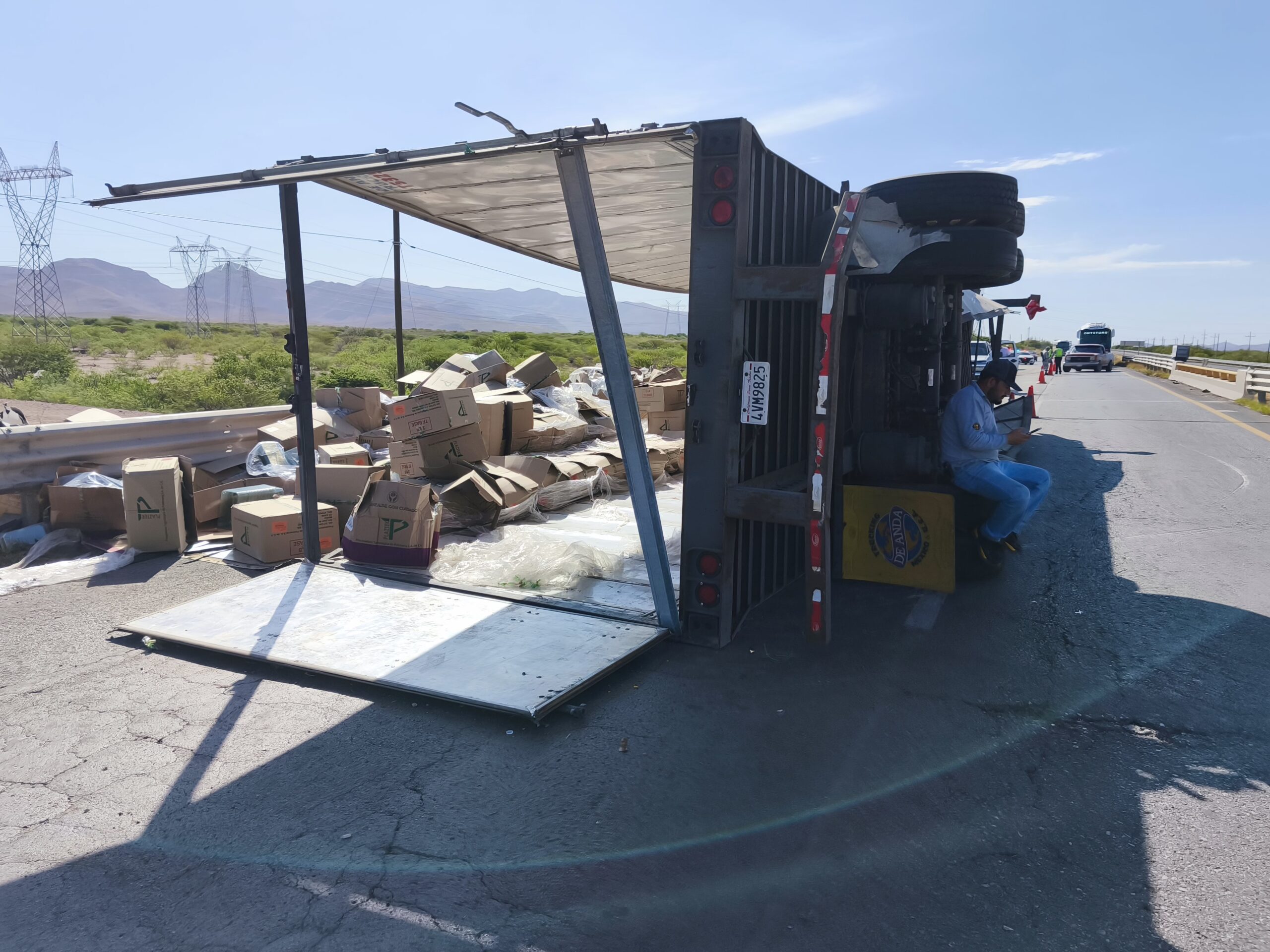 H. Cd de Chihuahua.- La tarde de este jueves se registró un aparatoso accidente sobre la carretera Delicias–Chihuahua, justo antes de llegar a las primeras gasolineras de la