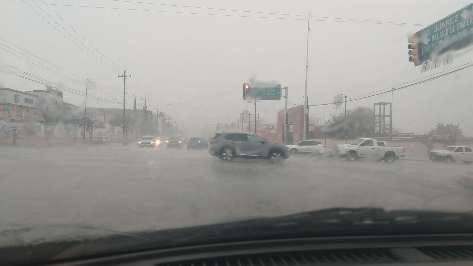 Asimismo, se ha reportado una fuerte tormenta con caída de granizo en el kilómetro 88 de la carretera Chihuahua–Juárez.