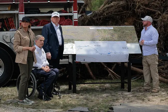 La visita del presidente estadounidense se produjo en un momento en que aumentaron las dudas sobre la gestión de la crisis por parte de las autoridades locales. también se cuestionó el impacto de los recortes presupuestarios, que solicitó la administración de Trump, en los sistemas de alerta y rescate. cuando después de la catástrofe se le preguntó si aún tenía la intención de desmantelar gradualmente la Agencia Federal para el Manejo de Emergencias (FEMA), Donald Trump respondió que no era el momento de hablar del tema.