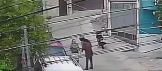 H. Cd. de Chihuahua.- Una cámara de seguridad captó el momento en que un hombre a bordo de una motocicleta asaltó a una mujer de la tercera edad
