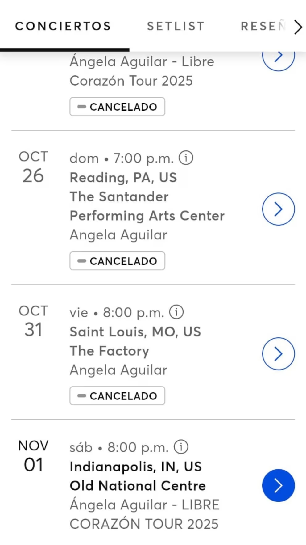 Las presentaciones canceladas incluyen teatros en New Jersey, Pensilvania y Misuri, con reembolsos gestionados a través de Ticketmaster. No obstante, Ángela confirmó nuevas fechas y sumó ciudades como Bakersfield y Albuquerque, manteniendo activos otros eventos de la gira. Mientras tanto, la Dinastía Aguilar enfrenta nuevamente la atención del público tras las declaraciones de Emiliano Aguilar, aunque la cantante aún no ha ofrecido comentarios sobre las cancelaciones.