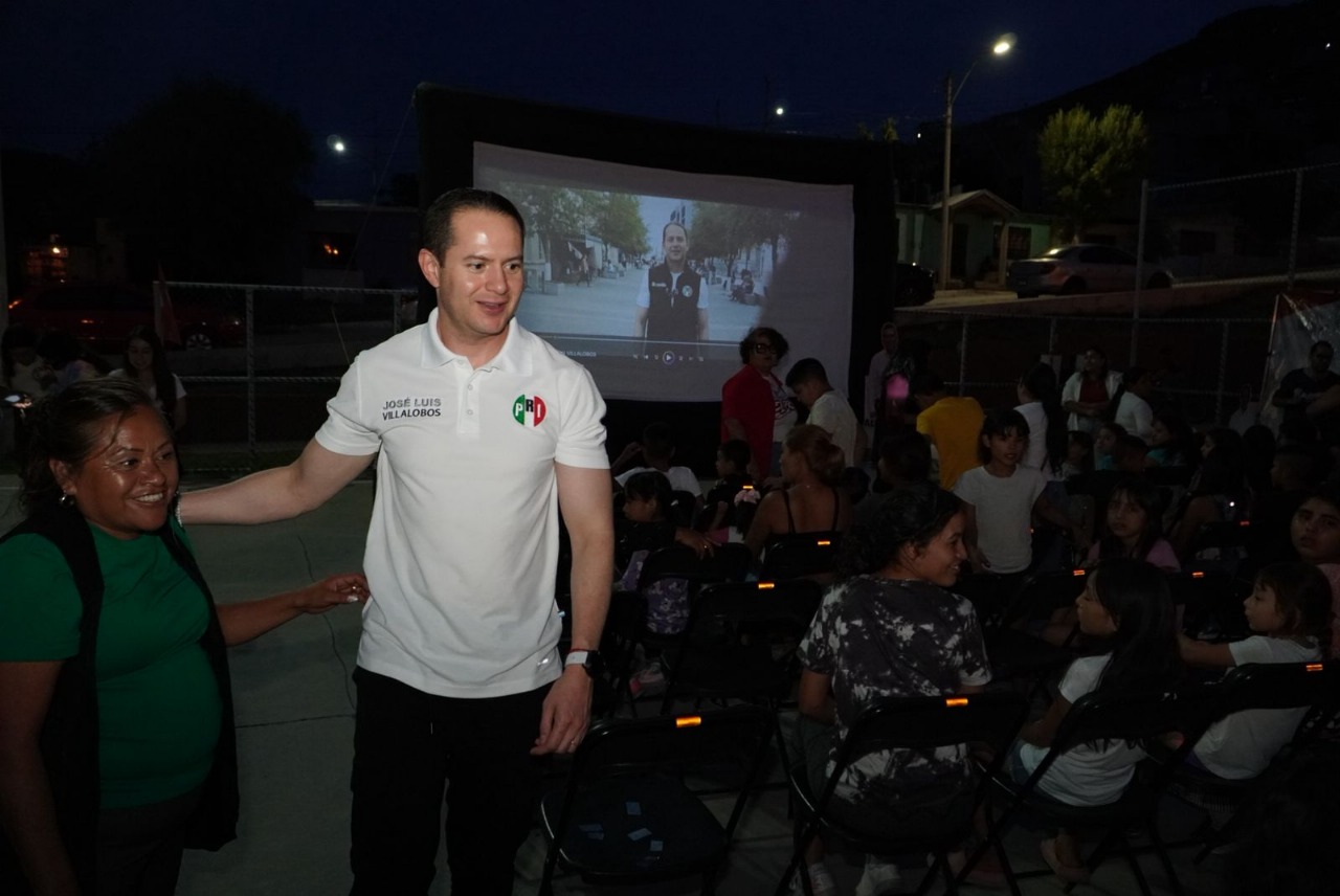 H. Cd de Chihuahua. – Con funciones de cine al aire libre, el diputado local del PRI, José Luis Villalobos, llevó entretenimiento y convivencia a familias de colonias
