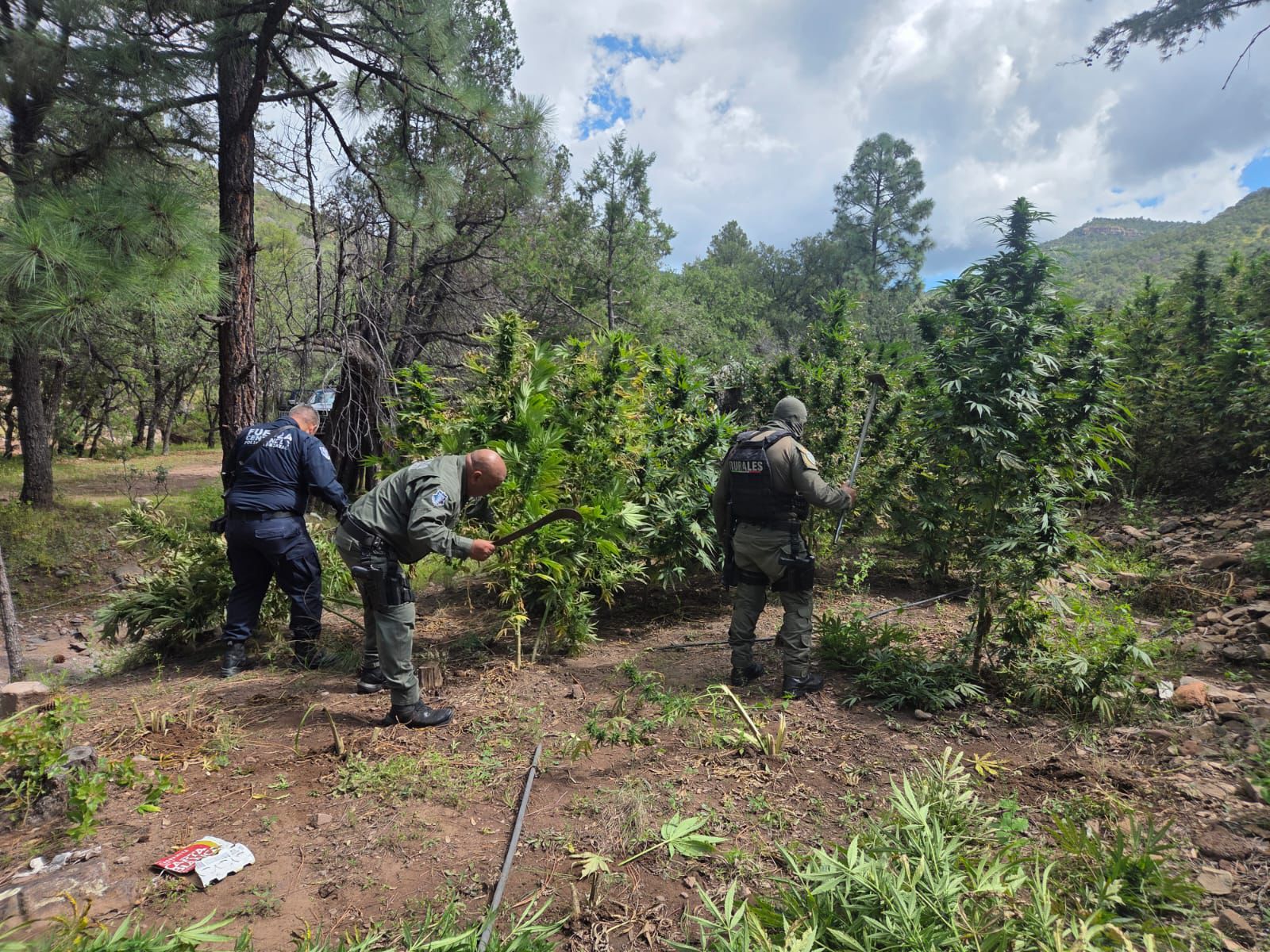 La Secretaría de Seguridad Pública del Estado (SSPE) llevó a cabo la localización y destrucción de tres plantíos de marihuana en la zona serrana del municipio de Guerrero,