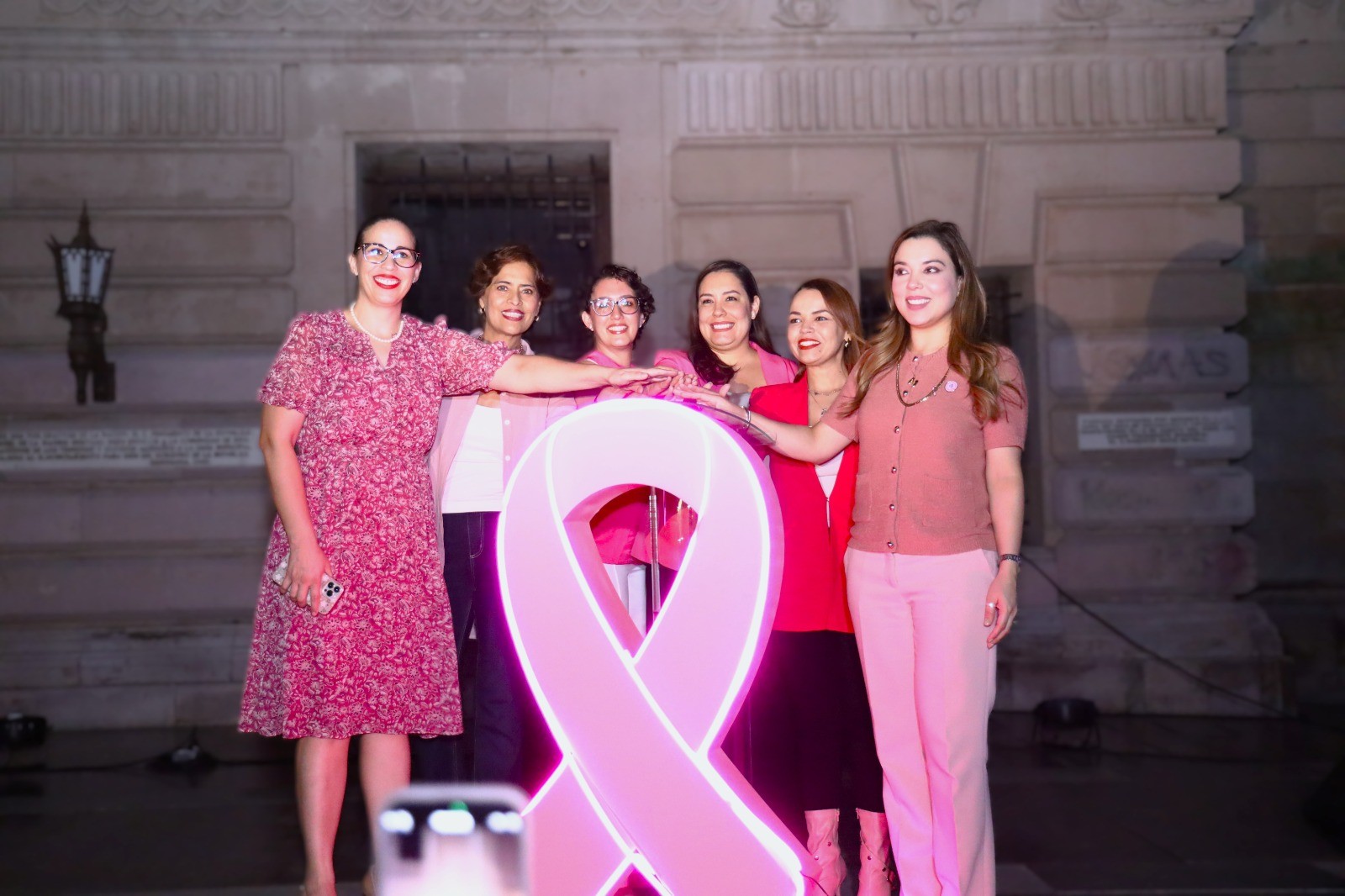 Participaron sobrevivientes de cáncer de mama del “Grupo Reto”, como Virna Pacheco, quien interpretó melodías en violín, y Judith Cristina Candia, quien compartió su testimonio de vida. La jornada concluyó con la iluminación de la Presidencia Municipal y edificios emblemáticos como símbolo de solidaridad y esperanza.