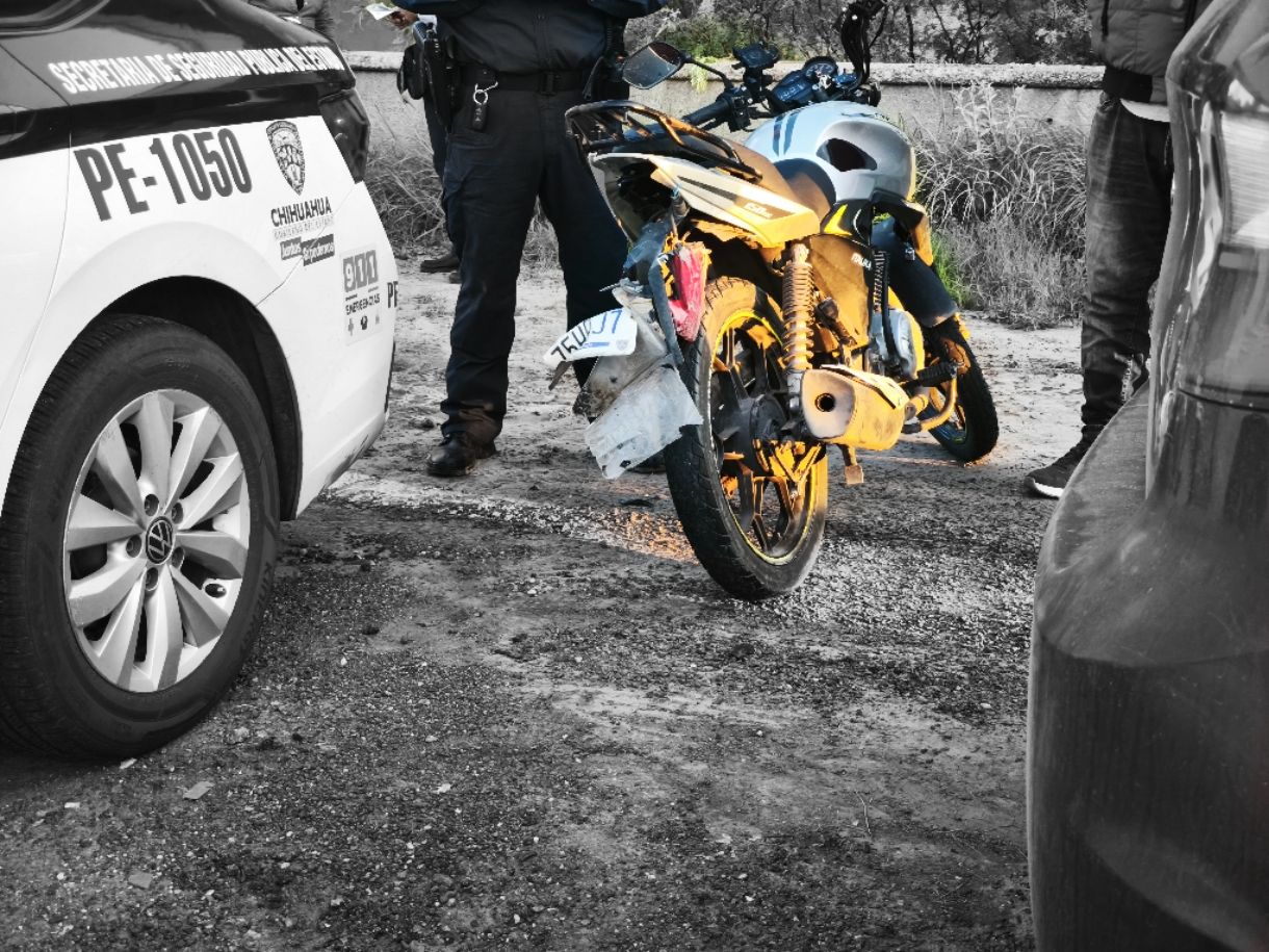 H. Cd de Chihuahua.- La mañana de este miércoles se registró un accidente vial en la intersección de la avenida Lombardo Toledano y Teófilo Borunda, donde una motocicleta