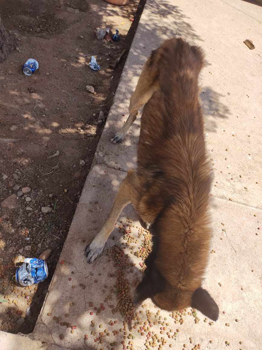 Sin embargo una persona les llevó croquetas a los canes, quienes comieron con desesperación, pero a pesar de haber reportado el caso, las autoridades no han acudido en su auxilio.