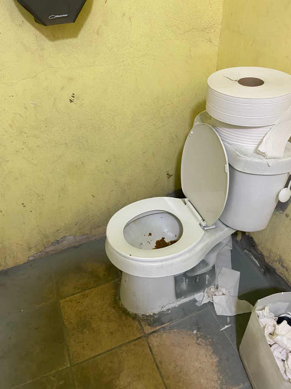 Solo hay dos baños para unas 60 personas, y al no haber agua, es imposible mantenerlos limpios, lo que ha creado un ambiente sucio e insalubre.