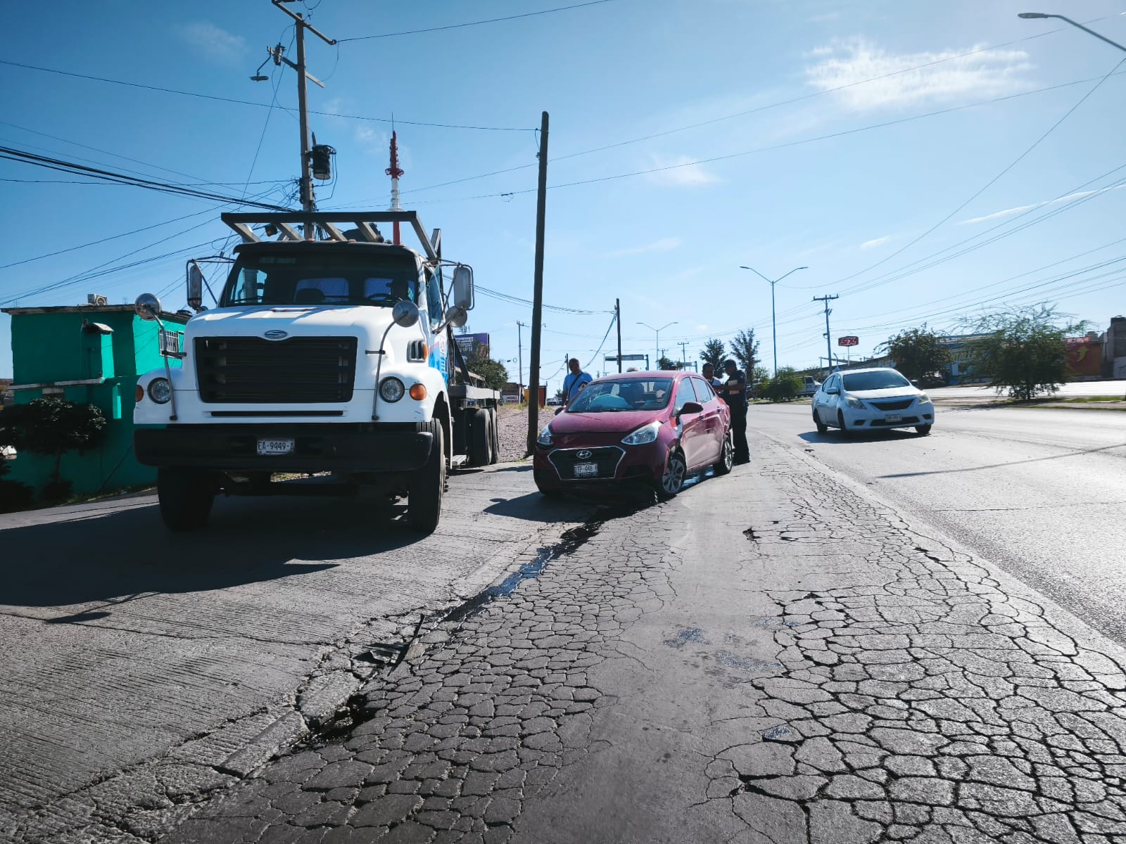 H. Cd de Chihuahua.- En la avenida Pacheco, a la altura de la Pedro Meoqui, dónde una conductora de un vehículo Hyundai Honda colisionó con un camión de