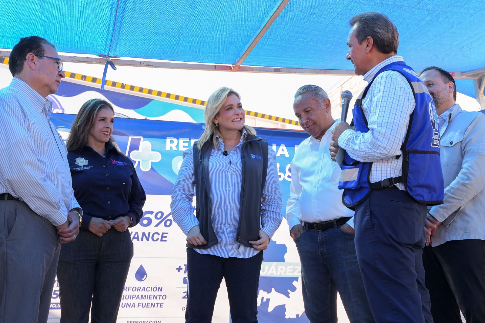 La gobernadora Maru Campos supervisó en Ciudad Juárez los avances de la primera de tres etapas, de la introducción de la Red de Agua Potable en el ejido El Sauzal, que una vez concluida en su totalidad, beneficiará a más de 1,700 familias.