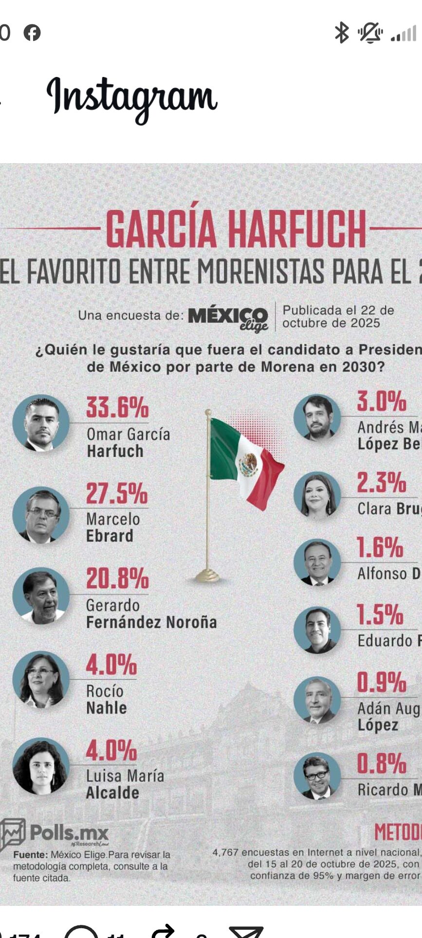 H. Cd de Chihuahua.- El secretario de Seguridad y Protección Ciudadana, Omar García Harfuch, es el favorito de los simpatizantes de Morena para ser el candidato presidencial en 2030, según una encuesta publicada por México Elige el 22 de octubre de 2025.