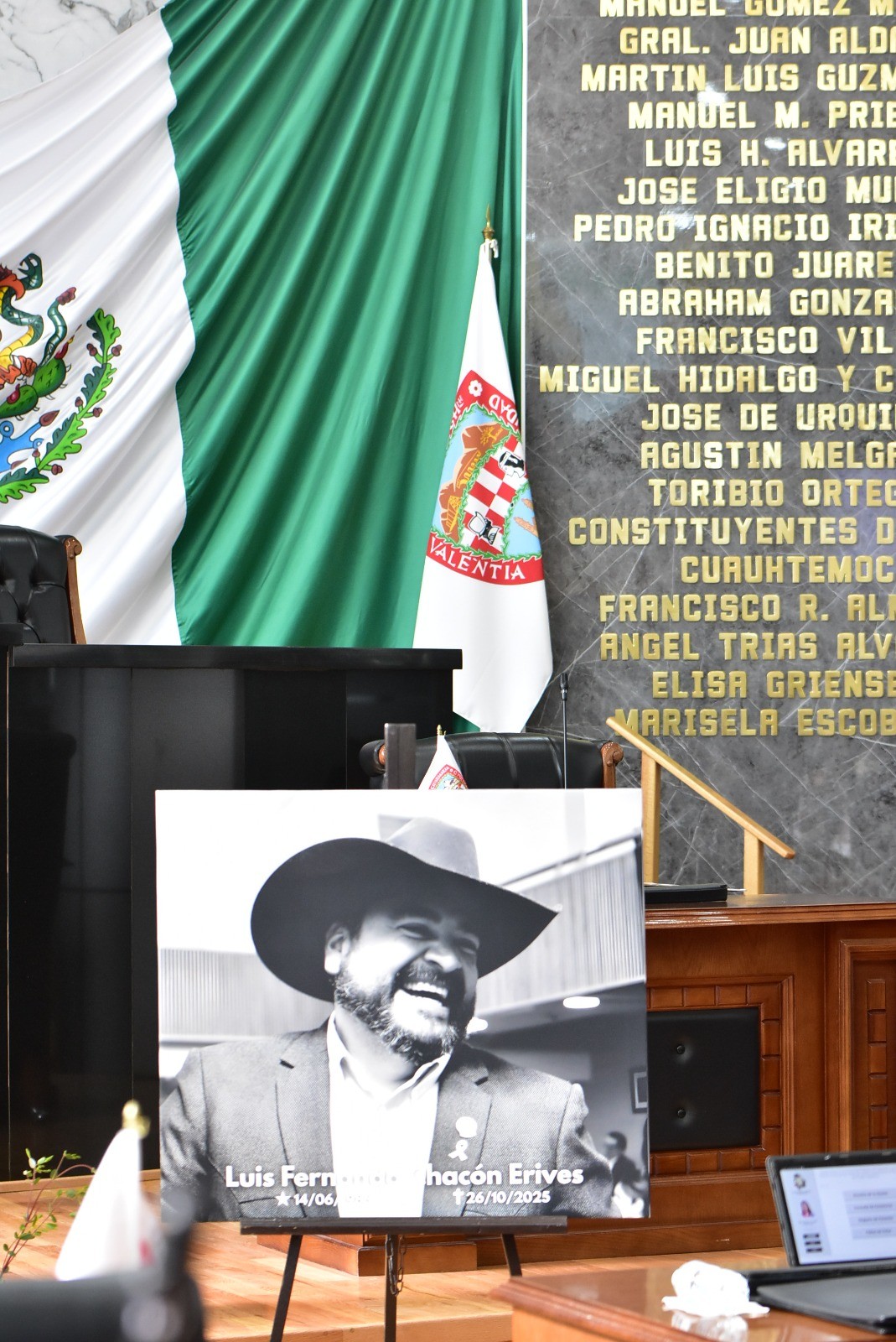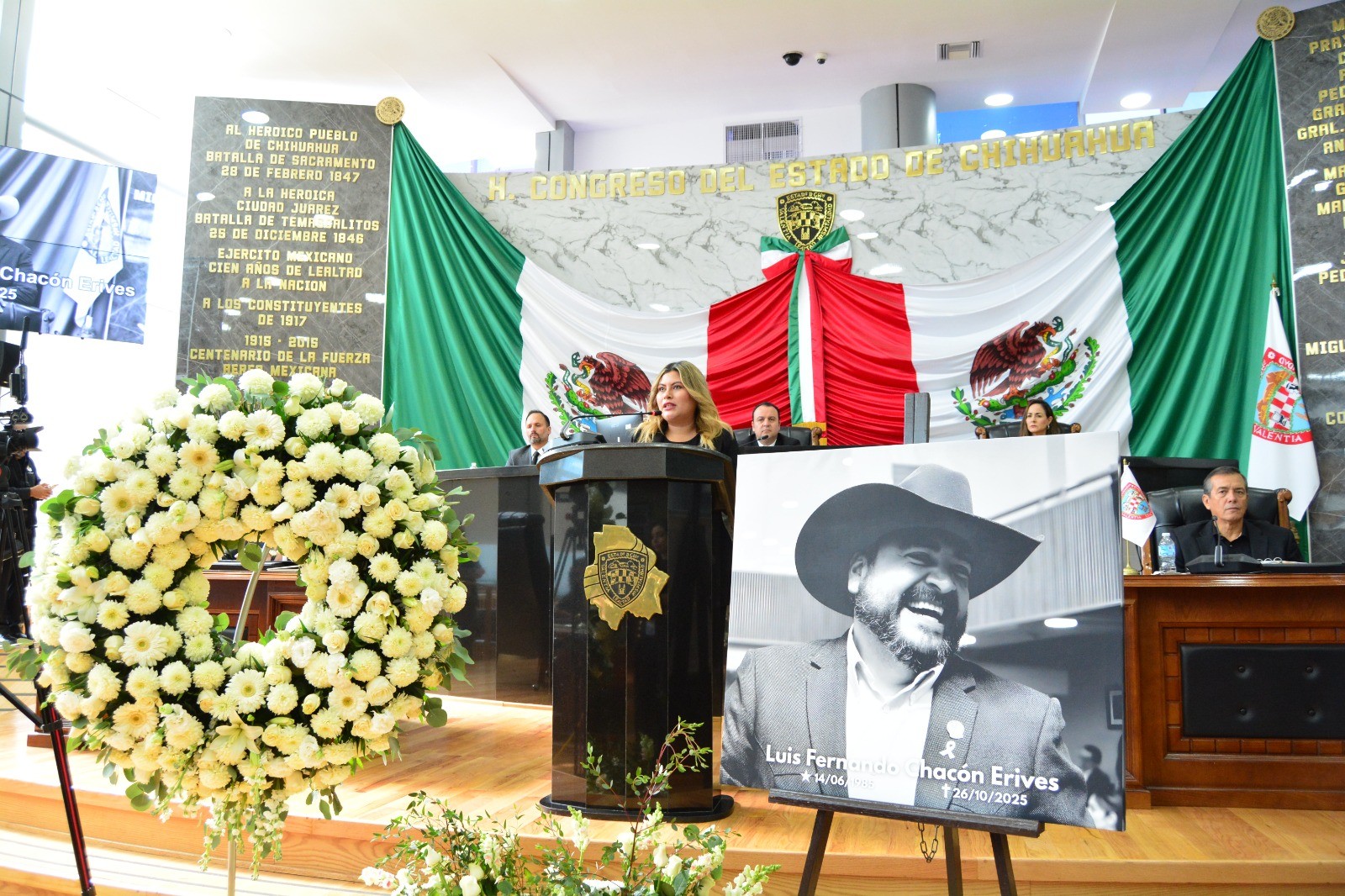 H. Cd. de Chihuahua.- En un ambiente de profundo respeto y emotividad, el Congreso del Estado rindió homenaje póstumo al diputado Luis Fernando Chacón Erives, representante del distrito 13 con cabecera en Guerrero, quien falleció recientemente víctima de un infarto.