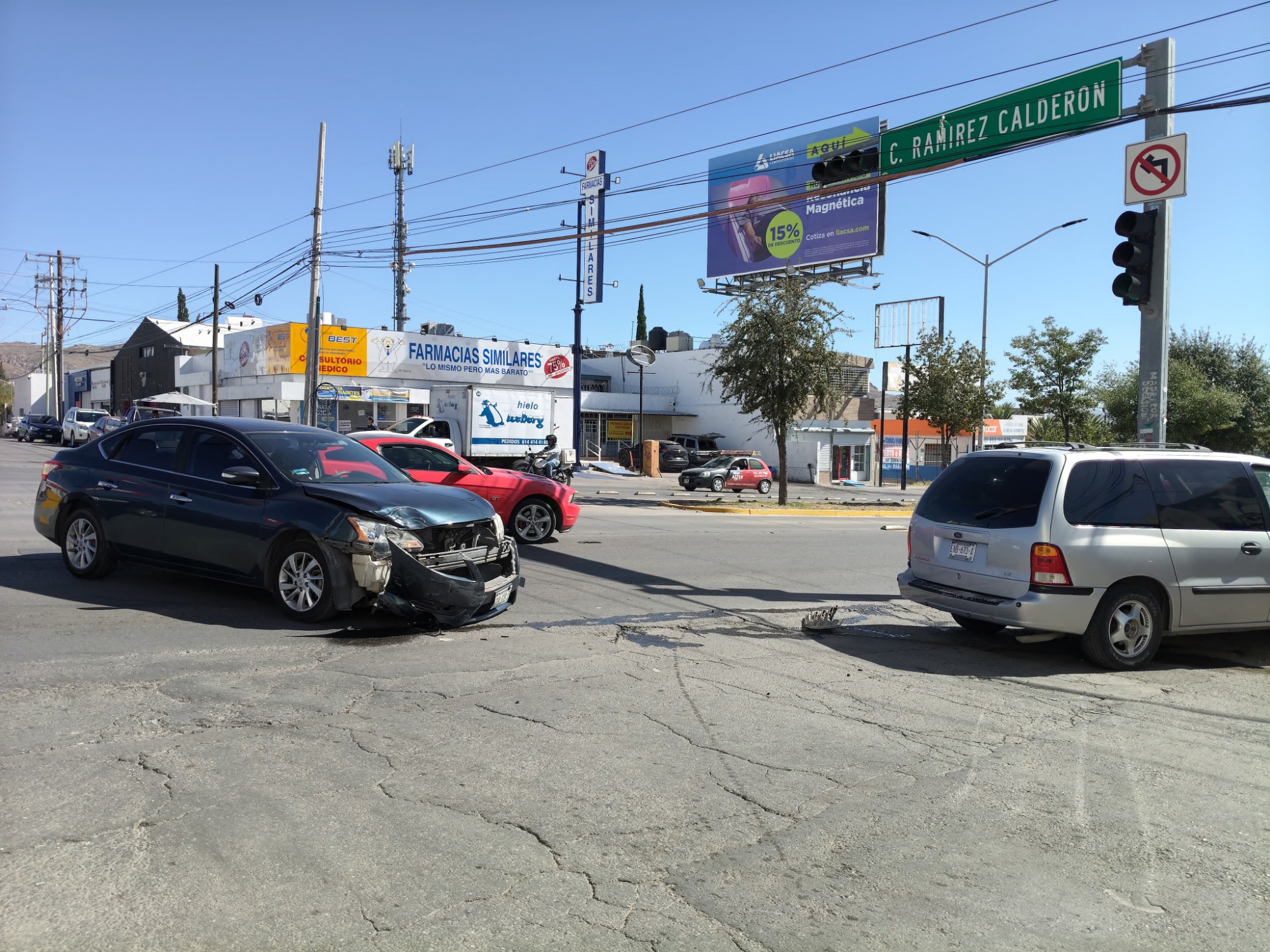 El percance involucró a un Nissan Sentra de color gris y una camioneta Ford Windstar, luego de que uno de los conductores no respetara la luz del semáforo.