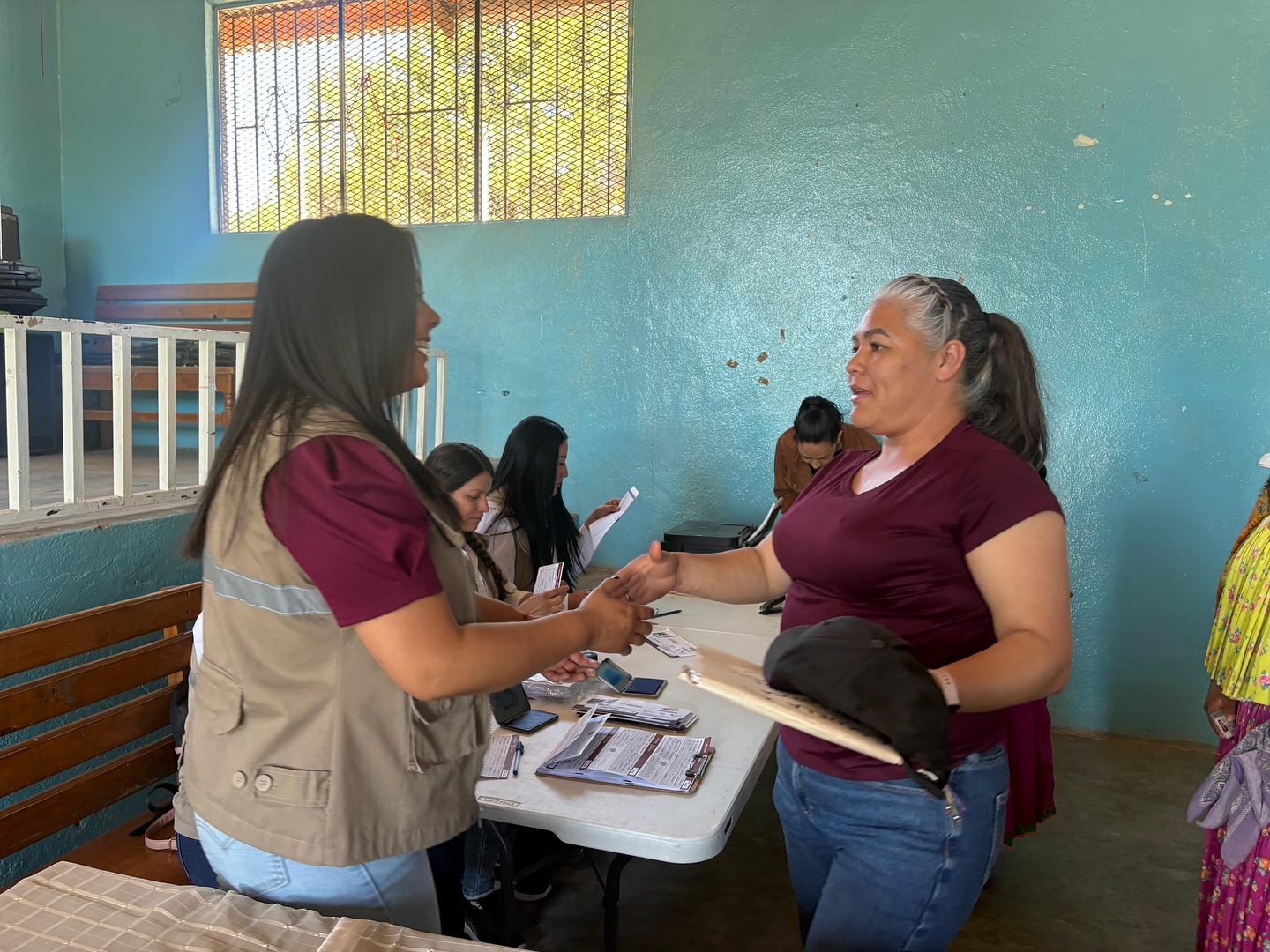 En la comunidad de Yoquivo, Batopilas, entregamos las tarjetas del programa “La Escuela es Nuestra” a los comités de madres y padres de familia.