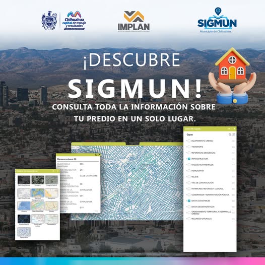 H. Cd. de Chihuahua.- El Implan presentó SIGMUN, una plataforma digital gratuita que permite conocer la clave catastral, uso de suelo, infraestructura y servicios de cualquier predio en