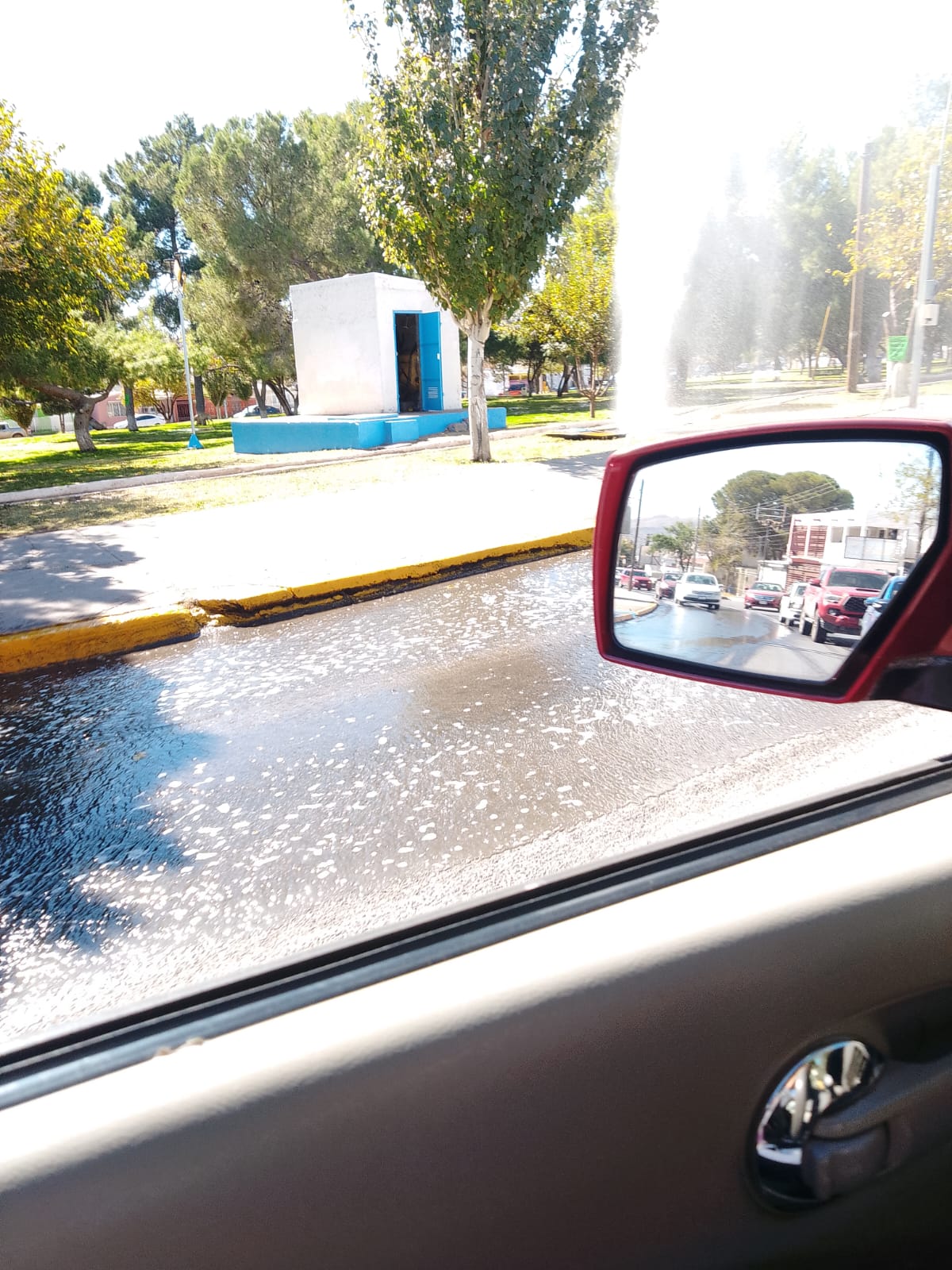 H. Cd de Chihuahua.- Una gran fuga de agua fue captada en el Parque El Platanito, sobre la avenida Juan Escutia, donde se observa un fuerte encharcamiento que