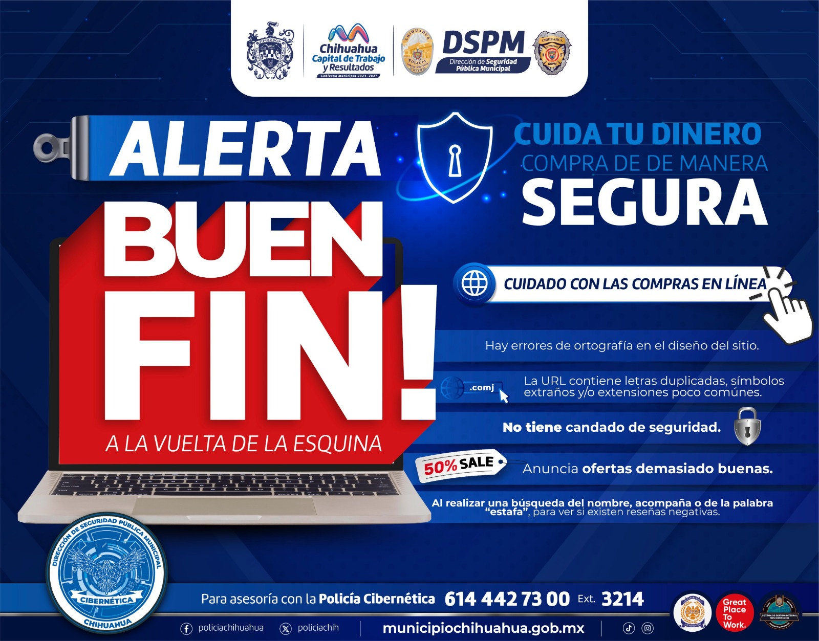 H. Cd. de Chihuahua.- La Policía Municipal emitió un llamado urgente a no dejarse engañar durante el Buen Fin, ya que cada año surgen páginas falsas que simulan