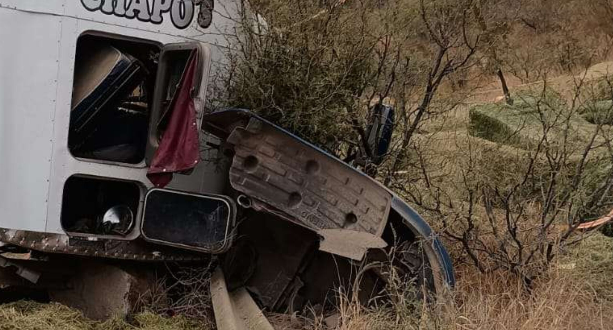 H. Cd de Chihuahua.- Un fuerte susto se llevó la gente que circulaba por el kilómetro 12 de la carretera Satevó a Delicias, donde un tráiler terminó volcado