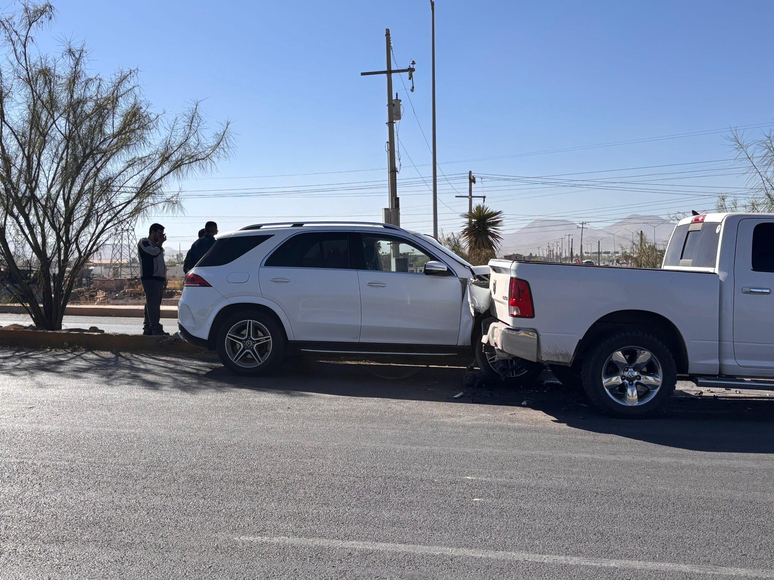 H. Cd de Chihuahua.- El conductor de una camioneta Mercedes de modelo reciente destrozó su vehículo tras impactarse fuertemente contra una pickup Dodge RAM, cuando ambos circulaban por