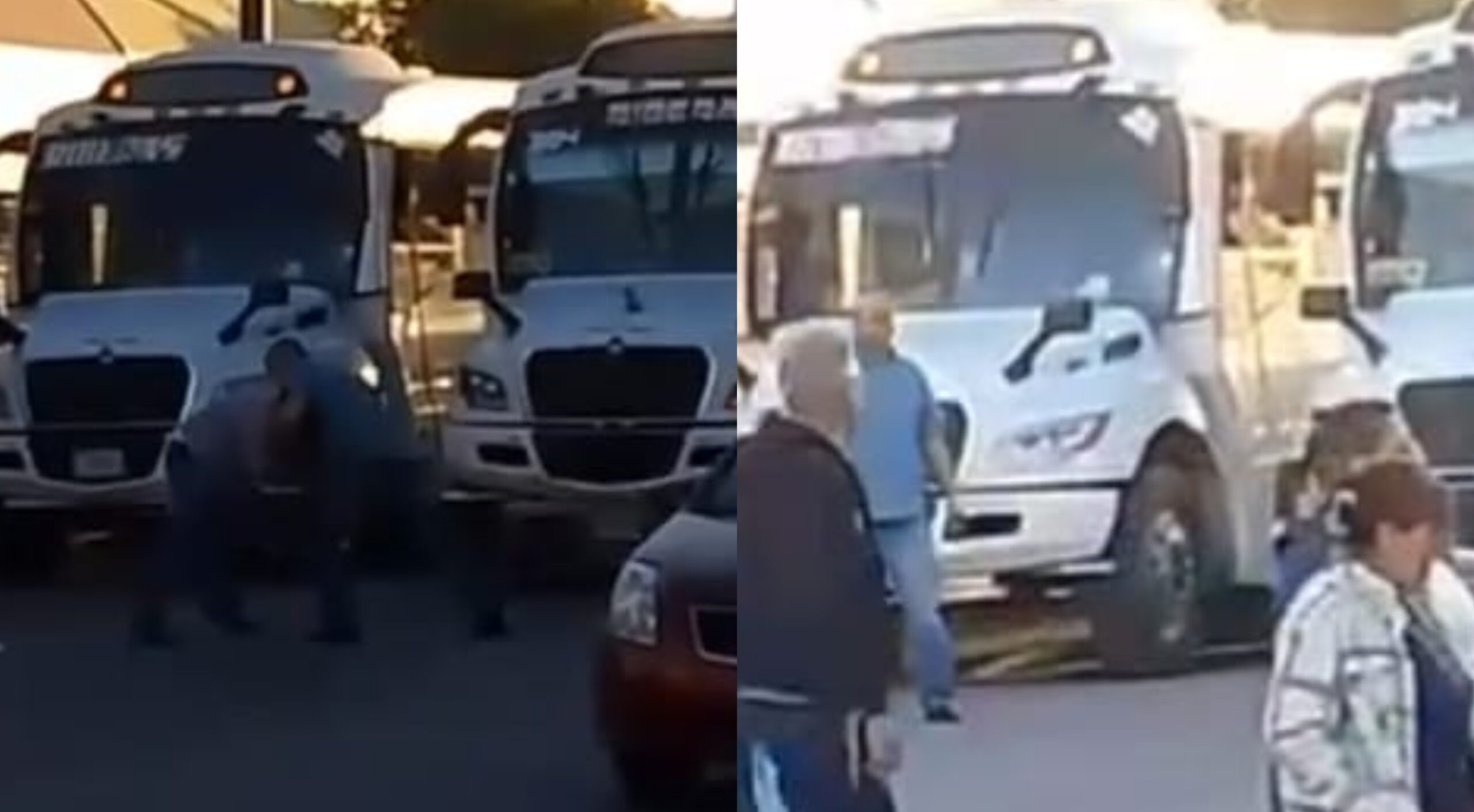 H. Ciudad de Chihuahua.- A través de sus seguidores, el medio En Blanco y Negro captó el momento en que dos conductores de un camión urbano de la