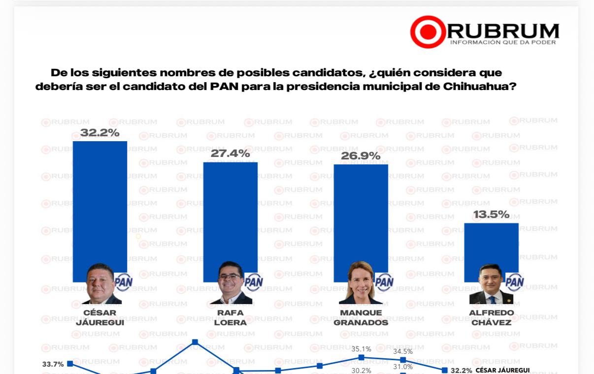 La encuesta Rubrum levantada el 15 de diciembre de 2025 refleja un escenario cerrado en la contienda interna del PAN por la presidencia municipal de Chihuahua, con una