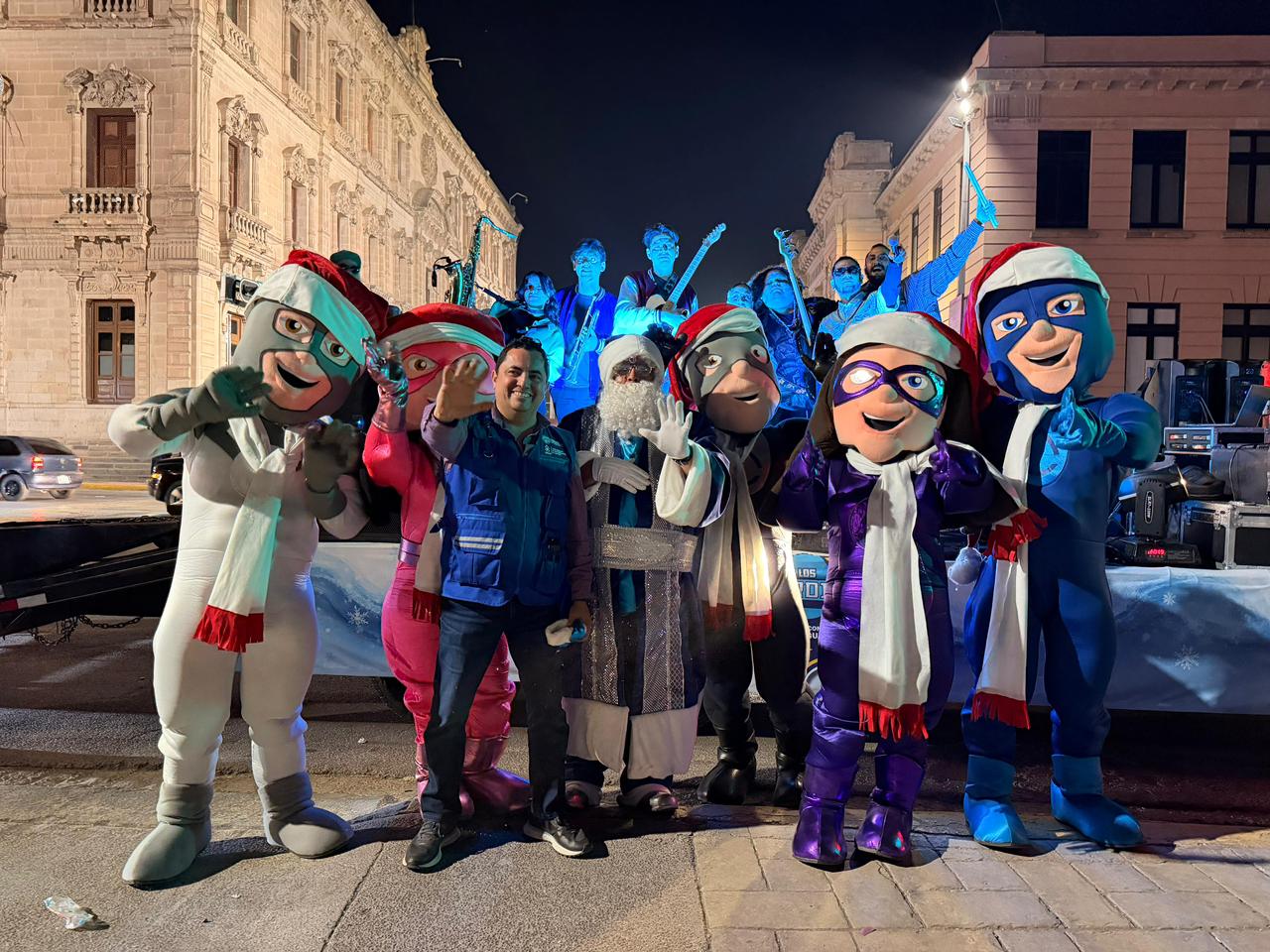 A través de este desfile navideño, la Junta Municipal de Agua y Saneamiento (JMAS) de Chihuahua, buscó fomentar entre los chihuahuenses la cultura del cuidado del agua con la presencia de estos superhéroes que aprovecharon para interactuar y dar obsequios a las niñas y niños.
