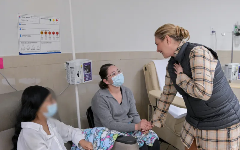 H. Cd. Juárez Chih.- La gobernadora Maru Campos visitó este 25 de diciembre el Hospital General de Ciudad Juárez para acompañar a pacientes y sus familias que pasaron la Nochebuena en el nosocomio, llevar un mensaje de ánimo y escuchar de primera mano sus necesidades. Durante el recorrido por áreas como urgencias, postoperatorio, radiología y hemodiálisis, convivió con tres jóvenes juarenses que reciben quimioterapia mediante el programa MediChihuahua, a quienes reiteró que no están solas y que la esperanza debe prevalecer ante la adversidad.