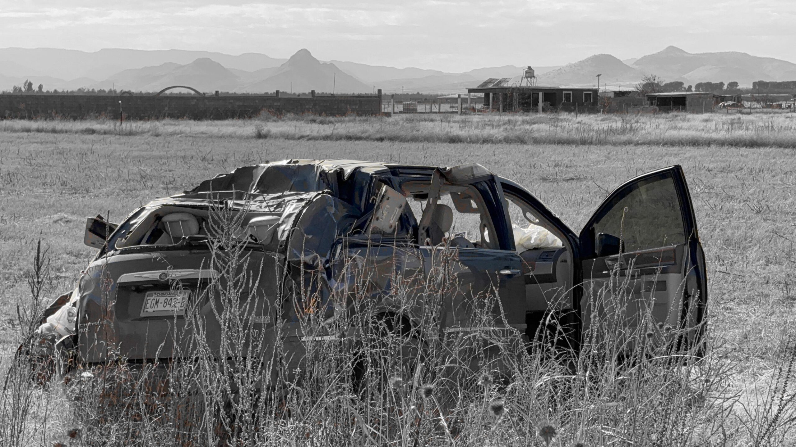 Una camioneta Chrysler Town & Country volcó de manera aparatosa la tarde de este jueves en la carretera Juárez–Chihuahua, a la altura del kilómetro 38+500, luego de que