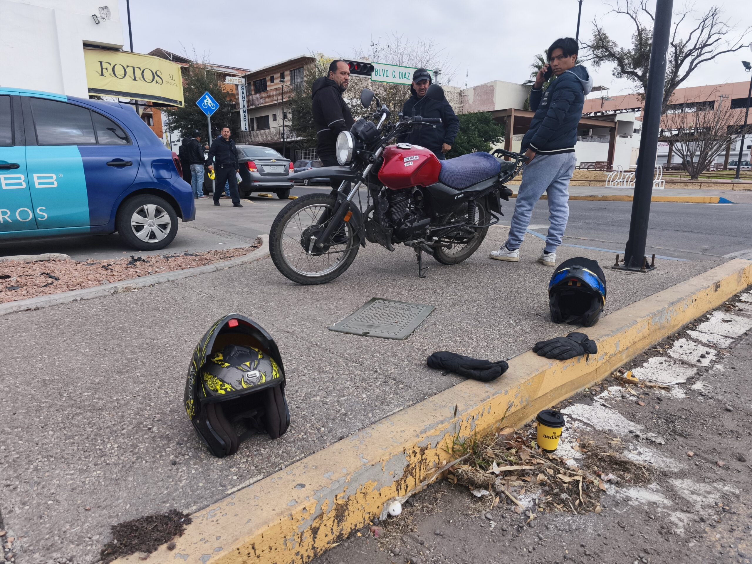 H. Cd de Chihuahua.- Un accidente vial se registró en el cruce del bulevar Díaz Ordaz y Las Damas, luego de que un motociclista le cortara la circulación