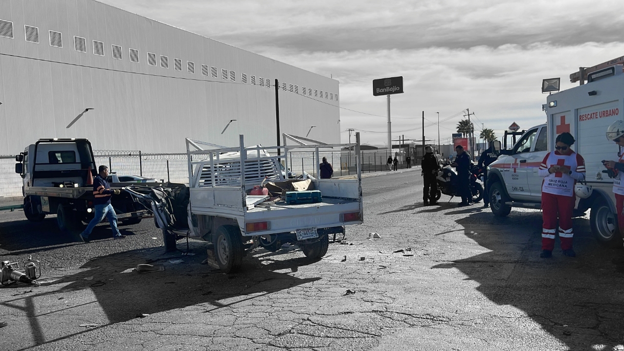 H. Cd de Chihuahua.- Un fuerte accidente vial se registró sobre la avenida Tecnológico, en sentido sur a norte, metros después de cruzar la calle Miguel Cervantes, cuando