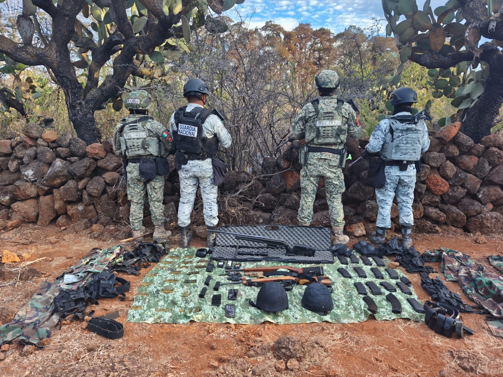 Agentes de la Guardia Nacional destruyeron un campamento clandestino, donde aseguraron armamento y equipo táctico, perteneciente a un grupo delictivo en Durango. En coordinación con el Ejército Mexicano,
