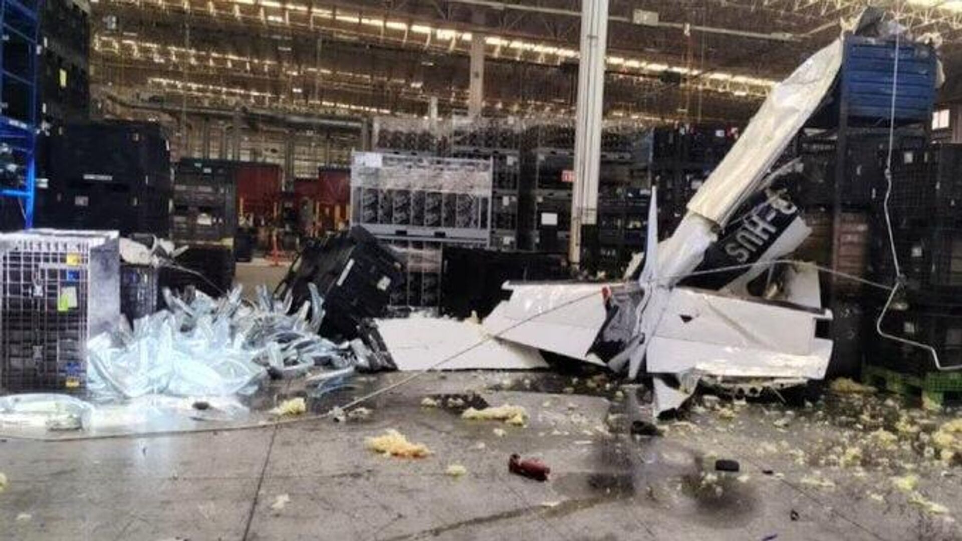 H. Cd. De Chihuahua.- ¡Aterrizaje forzoso en la bodega! De milagro no se los llevó la parca (Enblancoynegro) Una avioneta decidió que las pistas de aterrizaje eran demasiado