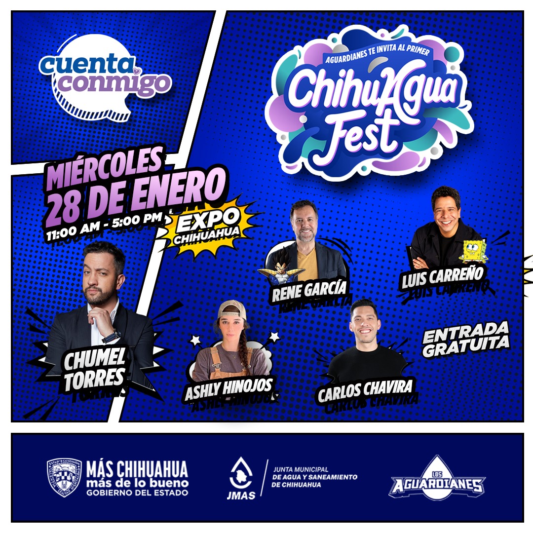 La Junta Municipal de Agua y Saneamiento (JMAS) de Chihuahua anunció la asistencia del comunicador Chumel Torres al primer ChihuAgua Fest 2026, que se llevará a cabo el 28 de enero en el Centro de Convenciones y Exposiciones, de 11:00 a 18:00 horas.