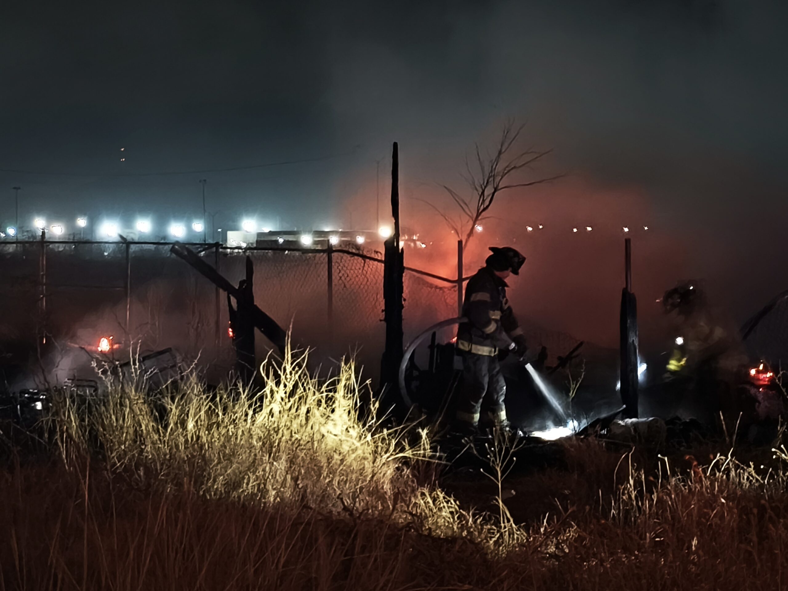 El terreno, lleno de basura y hierba seca, fue consumido rápidamente por las llamas, presuntamente luego de que una persona le prendiera fuego para mitigar el frío; sin embargo, las condiciones del lugar hicieron que el fuego se saliera de control, generando gran expectación entre vecinos.