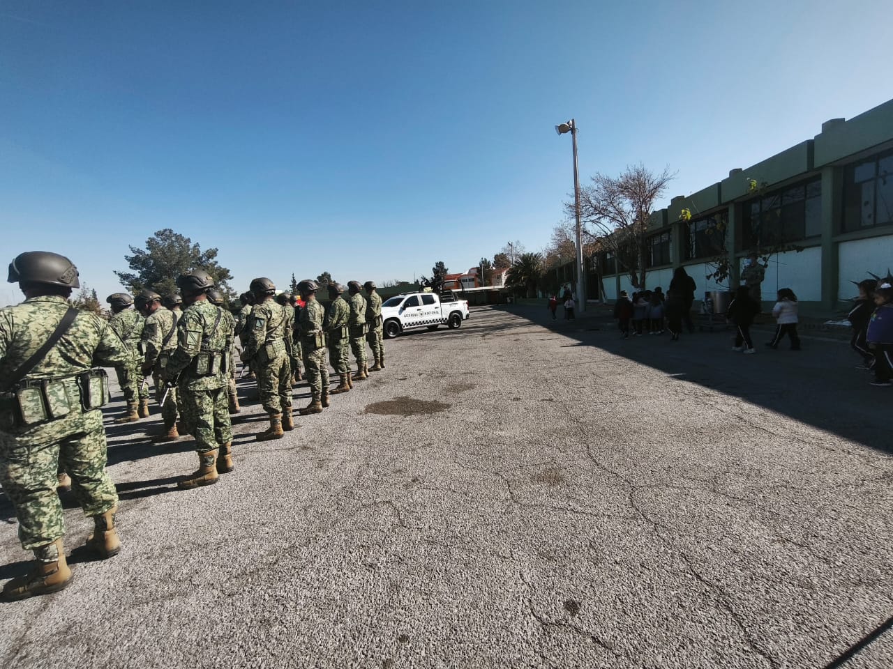 H. Cd de Chihuahua.- Estudiantes y maestros del Jardín de Niños Montessori La Corderona realizaron una visita especial a las instalaciones del 23 Batallón de Infantería del Ejército Mexicano, ubicado en la colonia Los Cuarteles, con el objetivo de conocer de cerca el trabajo que realizan las Fuerzas Armadas.