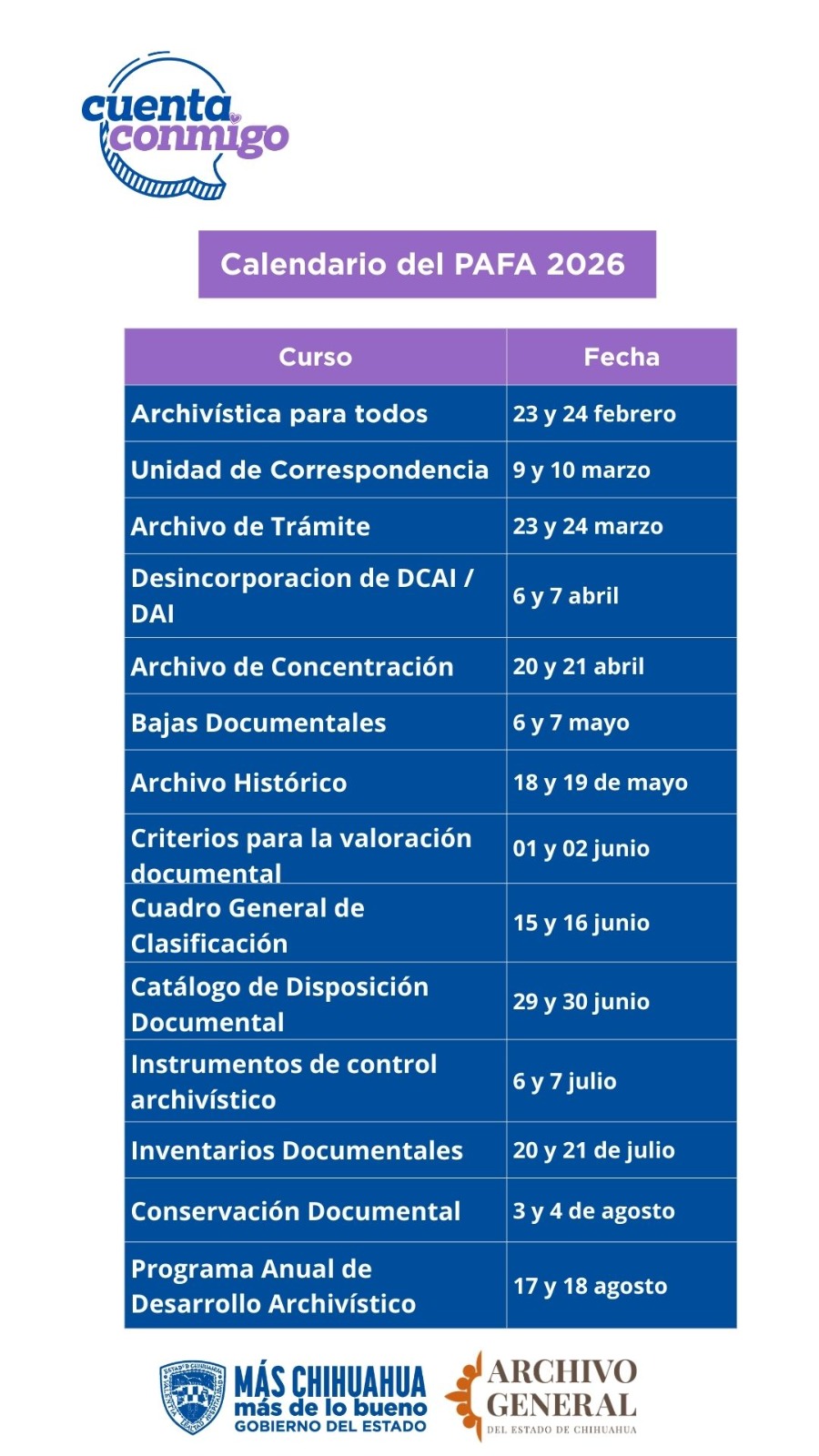 H. Cd de Chihuahua.- El Archivo General del Estado de Chihuahua lanzó la convocatoria del Programa Anual de Formación Archivística 2026, con el objetivo de mejorar la organización y manejo de documentos en las dependencias públicas.