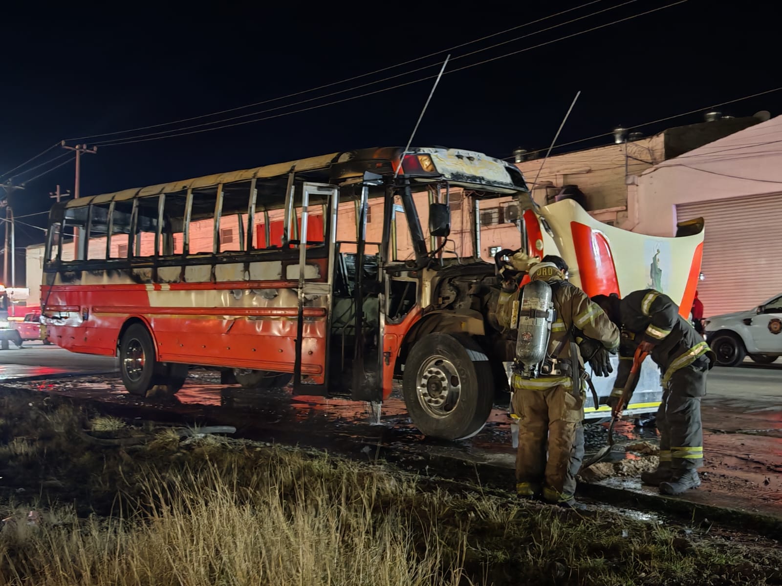 H. Ciudad de Chihuahua, Chih.- Un camión de transporte de personal perteneciente a la empresa Bafar fue consumido casi en su totalidad por el fuego la noche de este miércoles, tras registrarse una falla mecánica mientras circulaba sobre la vialidad CH-P, cerca del cruce con la calle 92.