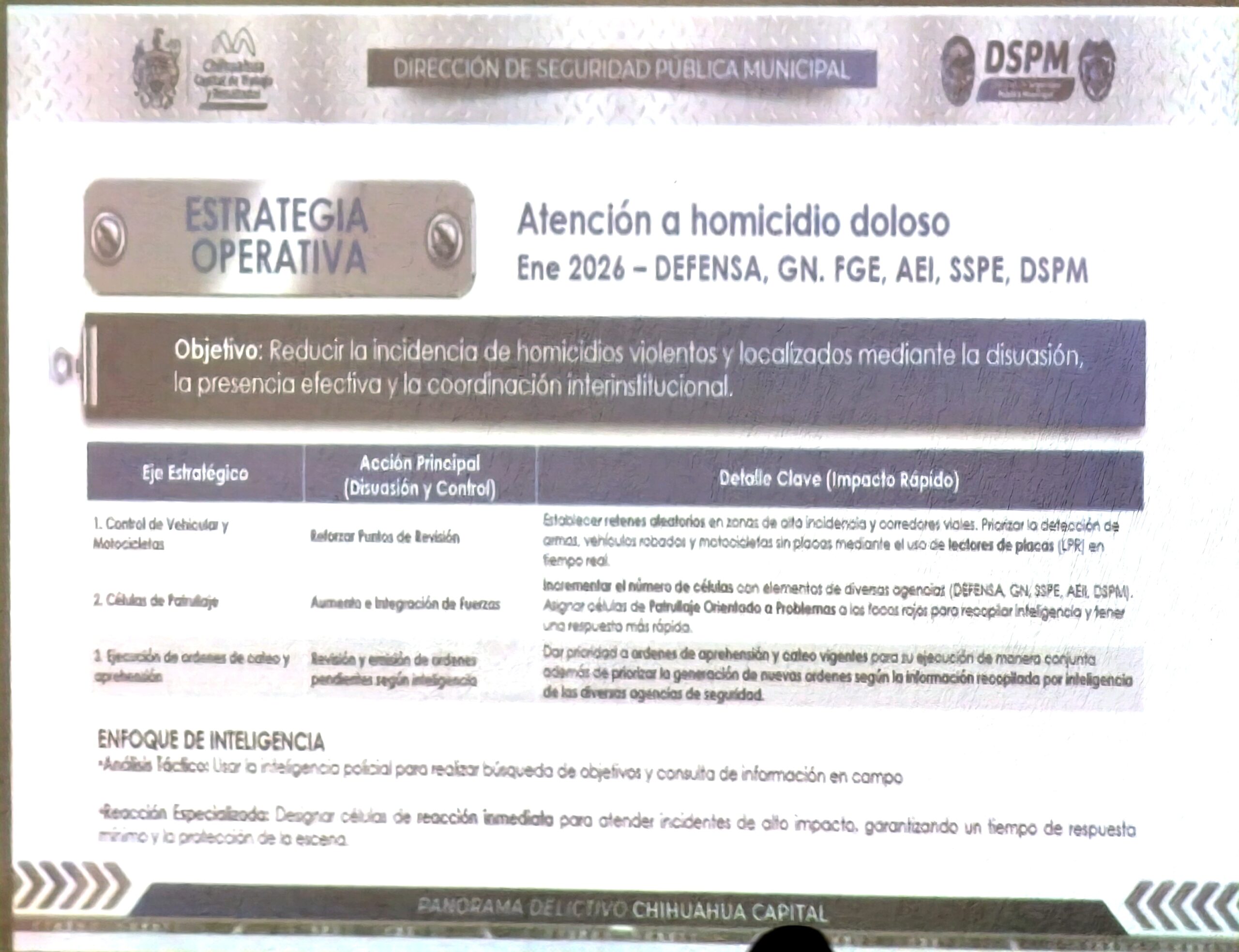 También se fortalecerá el trabajo de inteligencia y la reacción inmediata ante hechos de alto impacto, buscando una respuesta más rápida y mayor presencia policial en las calles de Chihuahua capital.