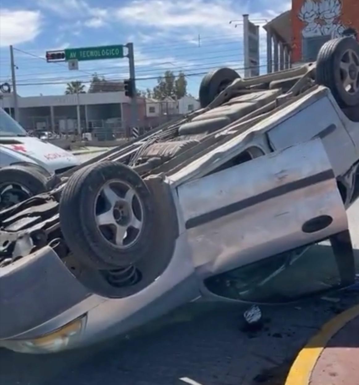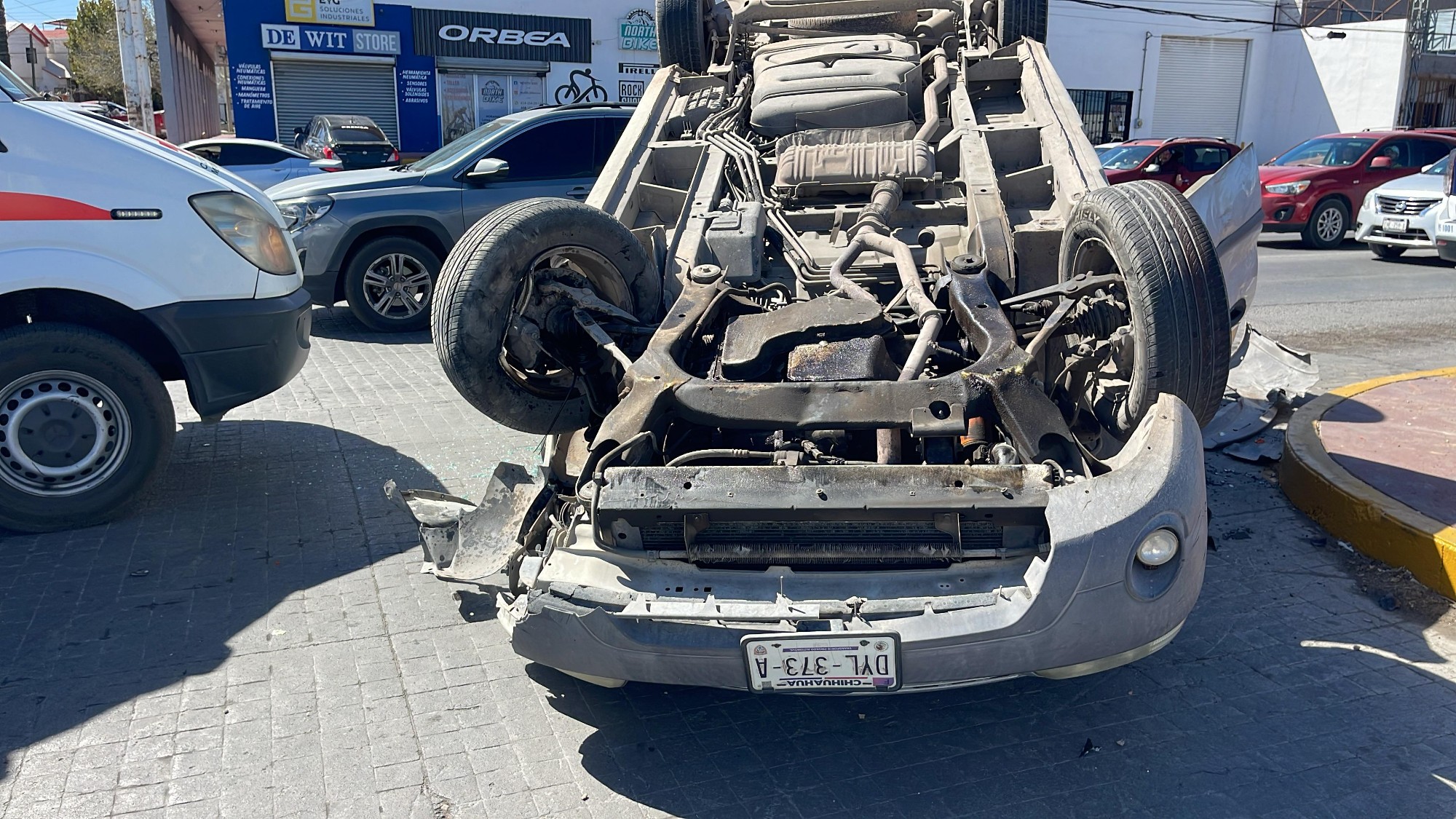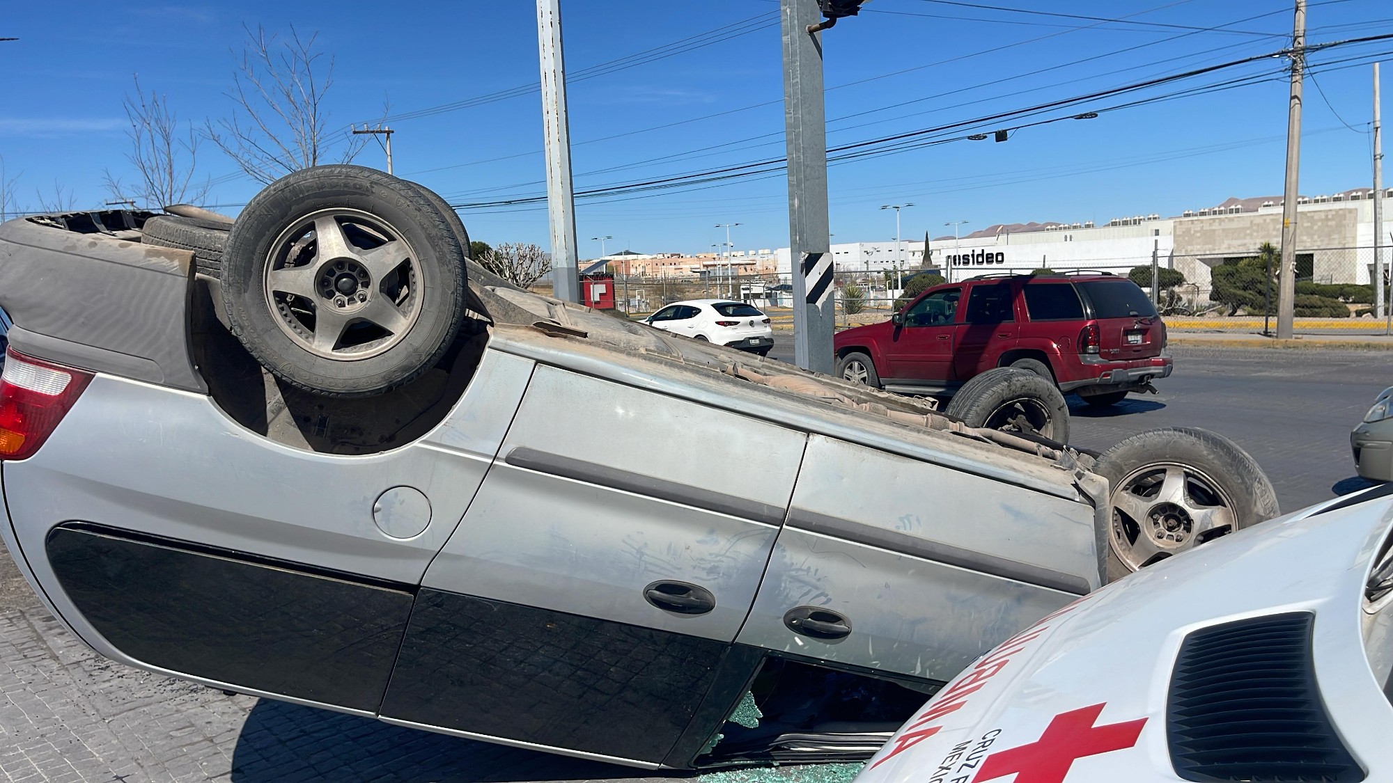 H. Ciudad de Chihuahua, Chih.- Una volcadura se registró sobre la avenida Tecnológico y Paseos de Bachíniva, en la colonia Paseos de Chihuahua, donde una mujer y dos menores resultaron con lesiones leves tras el accidente.