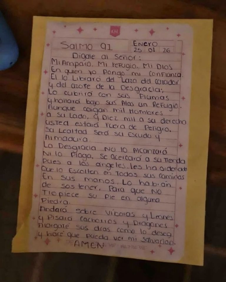 En el lugar también se encontraron figuras de la Virgen de Guadalupe, San Charbel y San Judas Tadeo, así como un escrito que cita el Salmo 91 de la Biblia, el cual hace referencia a la protección divina frente al peligro. Las autoridades no han confirmado si la carta fue escrita por el propio capo, aunque el contenido refuerza la versión de que mantenía fuertes creencias religiosas durante su huida.
