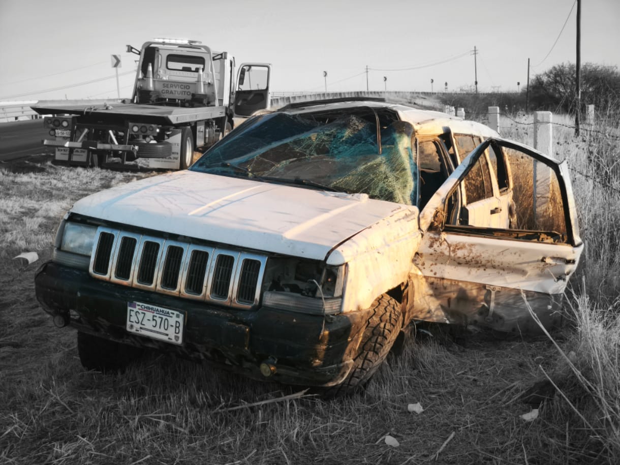 Un fuerte accidente se registrĂł en el acceso al libramiento Ojinaga–Ciudad Juárez, donde un hombre resultĂł con lesiones de gravedad tras volcar la camioneta que conducĂa.