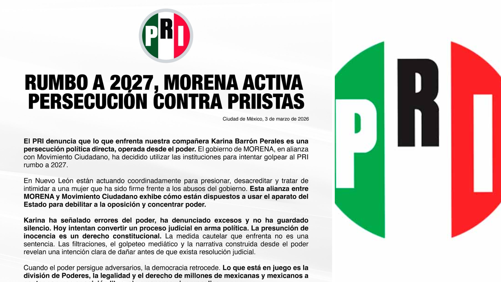 H. Cd de Chihuahua.- El PRI acusó a Morena y Movimiento Ciudadano de usar la justicia con fines políticos tras la detención de Karina Barrón Perales, exsecretaria de