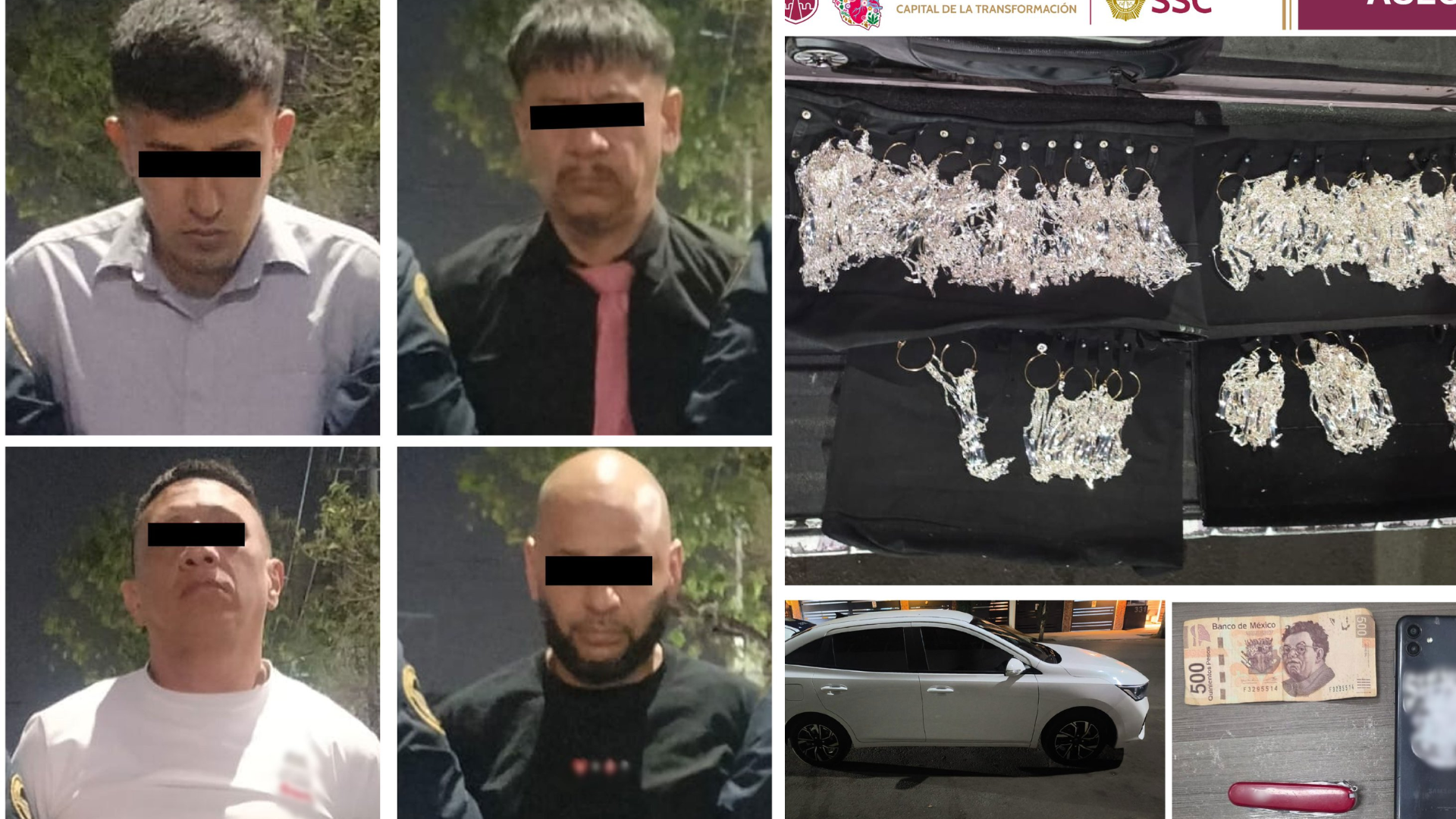 H. Cd de Chihuahua.- Elementos de la Secretaría de Seguridad Ciudadana de la Ciudad de México detuvieron a cuatro ciudadanos colombianos acusados de robar 739 piezas de joyería