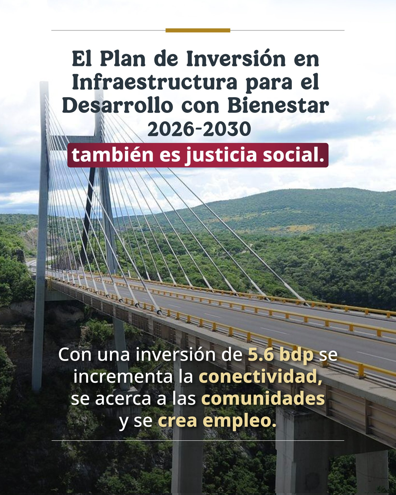 La Secretaría de Hacienda y Crédito Público (SHCP) informó que, al cierre del sexenio en 2030, se prevé una inversión histórica de hasta 5.6 billones de pesos en infraestructura, como parte del Plan de Inversión para el Desarrollo con Bienestar.