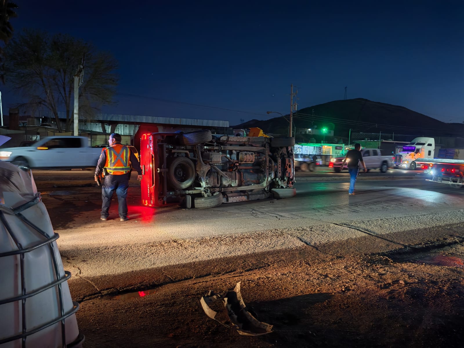 H. Cd. de Chihuahua.- Un aparatoso choque con volcadura se registró durante la tarde-noche de este jueves en el entronque de la carretera Chihuahua a Cuauhtémoc y la entrada al ejido Labor de Terrazas. El incidente ocurrió cuando el conductor de un vehículo Nissan Altima intentó incorporarse a la rúa federal saliendo del mencionado ejido sin la debida precaución; la maniobra resultó en un impacto lateral contra una Pick-up Jac Frison de reciente modelo, la cual, debido a la fuerza del golpe y la velocidad, perdió la verticalidad y terminó volcada sobre su costado en plena cinta asfáltica.
