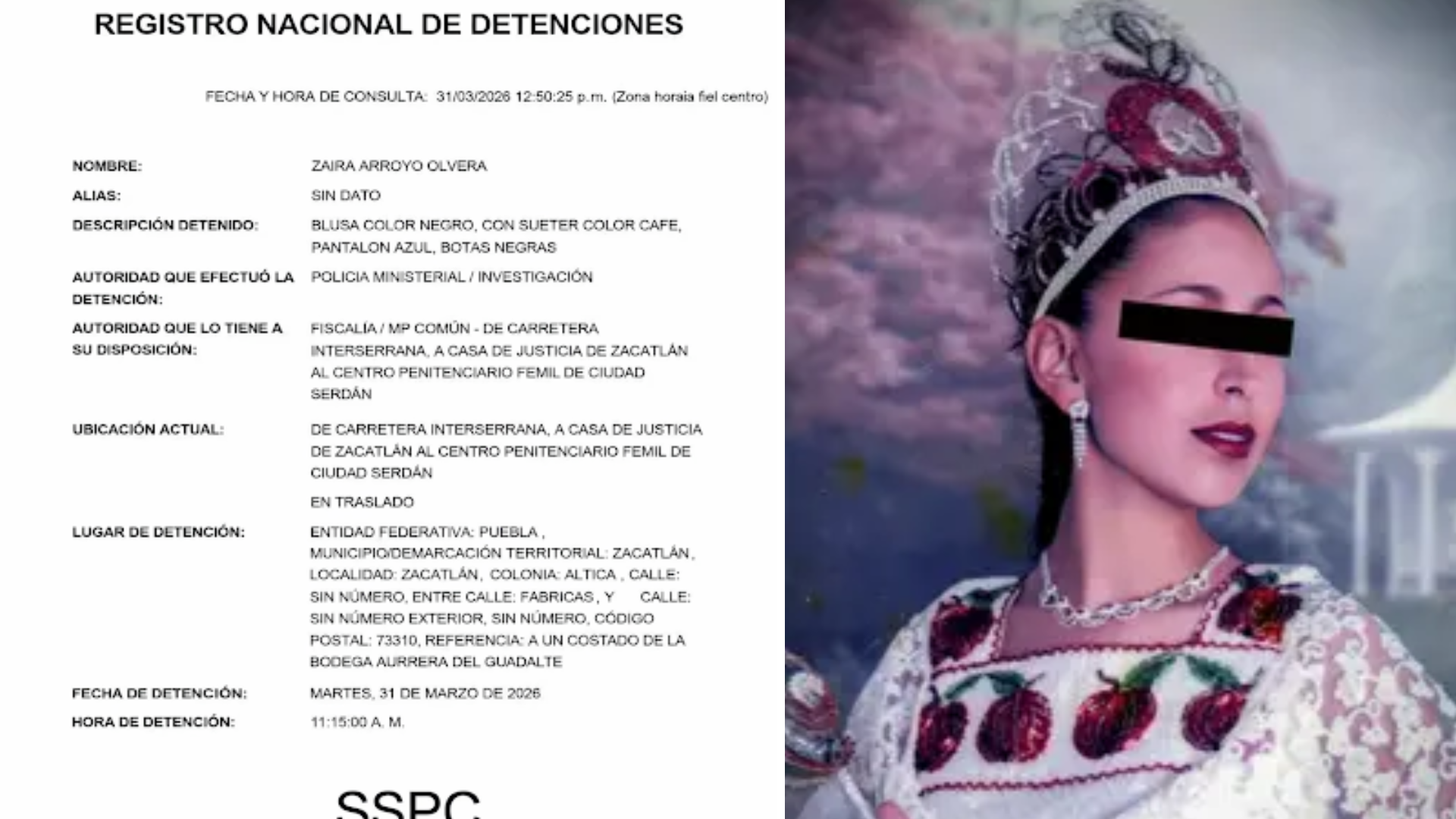 H. Cd de Chihuahua.- Autoridades del estado de Puebla detuvieron a Zaira “N”, quien en el pasado fue coronada como reina de la Feria de la Manzana en