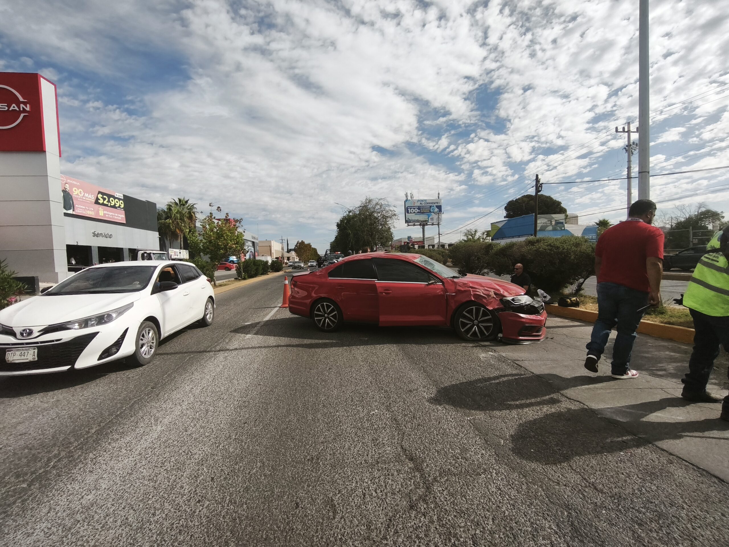 El primero ocurrió en el cruce con la avenida López Mateos, donde la conductora de un Nissan Versa intentó incorporarse, pero le cerró el paso a un Hyundai, el cual la impactó en un costado.