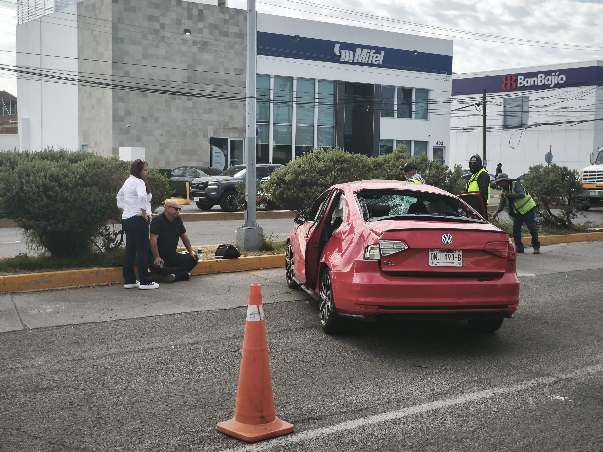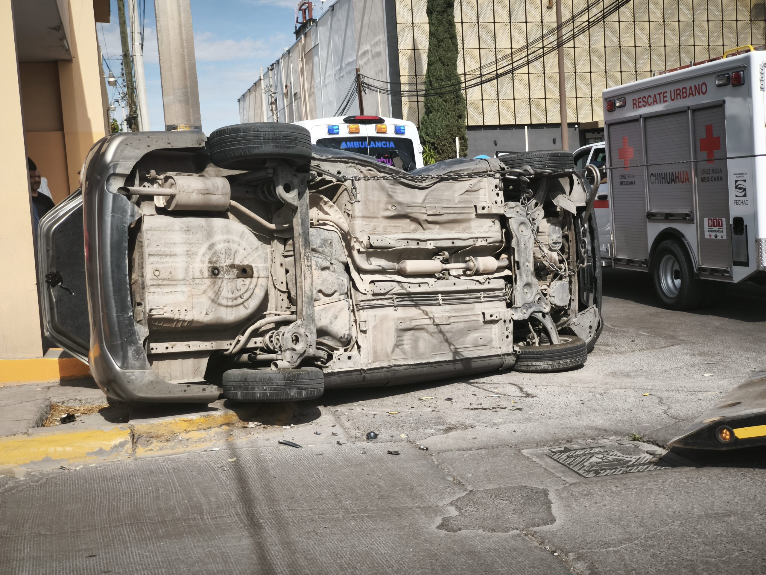 Tras el choque, el Versa fue proyectado contra la banqueta, dejando atrapada a la conductora y lesionando también a un peatón que se encontraba en la zona. Elementos de la Cruz Roja realizaron maniobras de rescate para liberar a la mujer, quien fue trasladada a un hospital junto con el peatón herido.